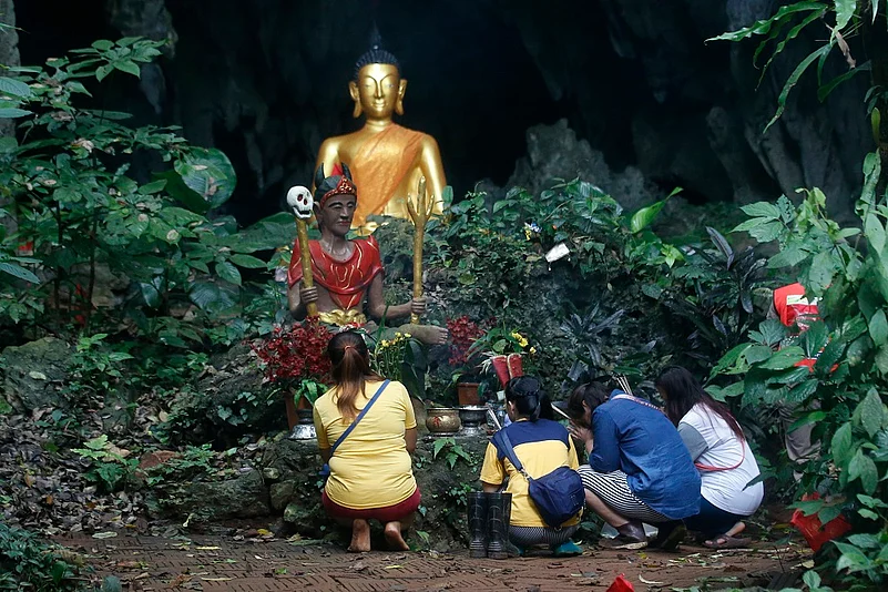 June 25: As the search expands, handprints and footprints thought to belong to the boys are found farther from the cave entrance. Parents holding a vigil outside begin prayer sessions.