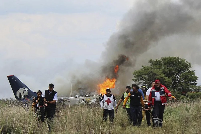 An Aeromexico flight crashed on takeoff during a heavy hail storm in northern Mexico, engulfing the plane in flames. All 103 people inside the flight were rescued with 97 of them injured.