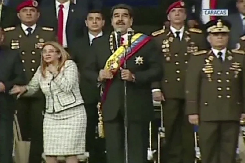 Venezuelan President Nicolas Maduro has said he escaped an "assassination" attempt using an explosive-laden drone, after a live broadcast showed him looking confused when a bang went off during a Caracas military parade and dozens of soldiers scuttling for safety.