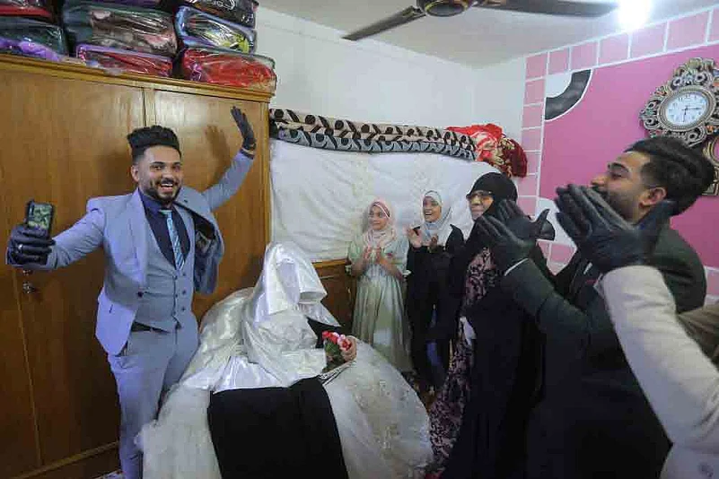 “I didn't expect my wedding to be this way. I was hoping for a party and that we would visit the imam,” said Ruqaya Rahim, the new bride, referring to the religious official who leads prayers in the mosque. “But we were prevented from doing that.”
