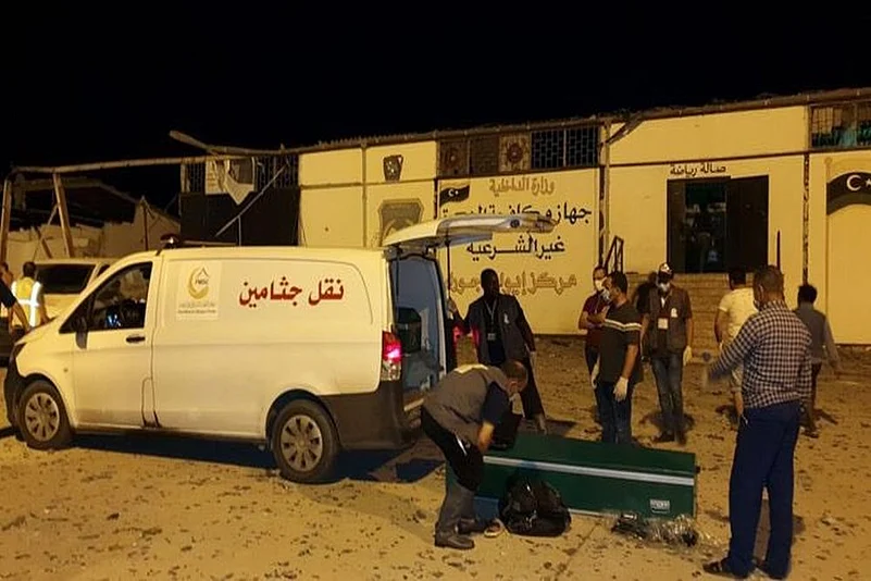 At least 40 migrants were killed and more than 80 injured in an alleged air strike by forces loyal to Marshal Khalifa Haftar, that hit a detention center in Libya's capital, a source within the UN-backed government said on Wednesday.