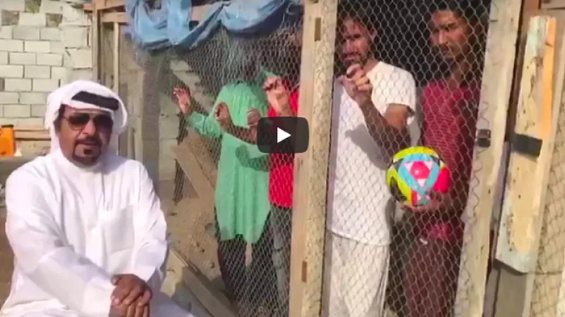 In the viral video, the man, brandishing a stick, is seen sitting and talking to several workers locked up in a bird cage. He asks them who do they support between the UAE and India, Khaleej Times reported.
