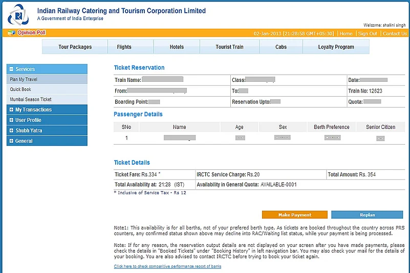 Users can store the names of verified passengers accompanying them on the 'master list'. This should be done before starting the process for booking more than six tickets a month, officials said.