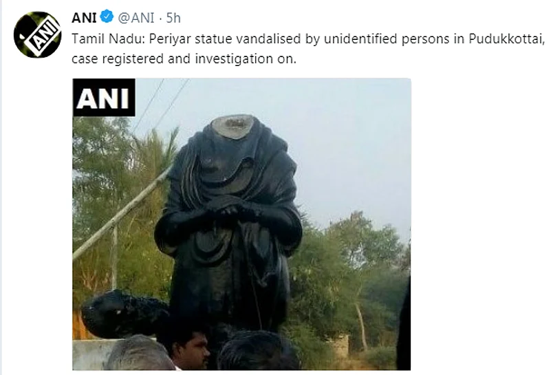 The incident assumed political significance as it came after senior BJP leader H Raja indicated that statues of the rationalist leader could be the next to be pulled down after a statue of Communist icon Lenin was razed by suspected BJP workers in Tripura.