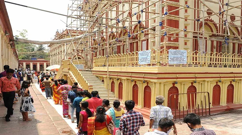 West Bengal: People offering prayers at the Kalighat Kali Temple in Kolkata as the Bengali New Year begins today.