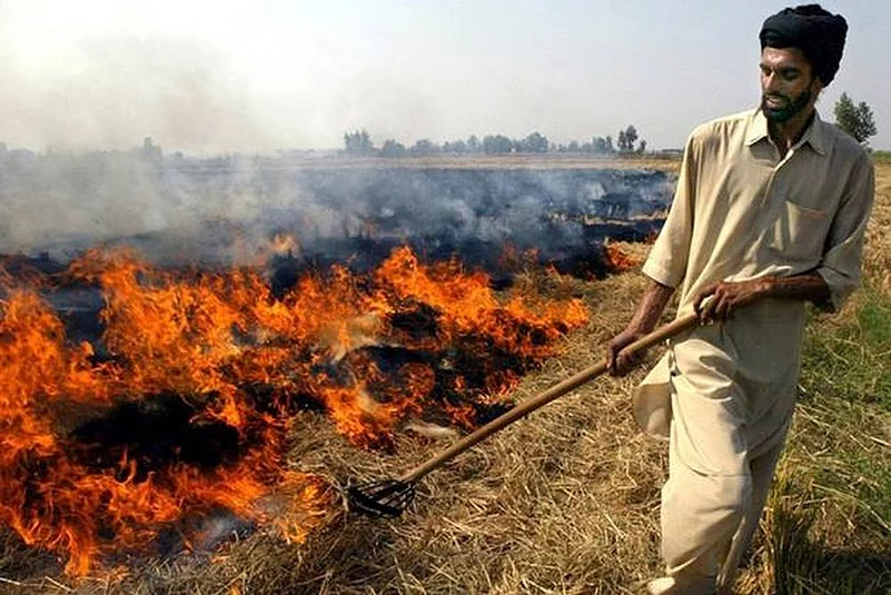 Rice straw is a rice harvesting residue and is traditionally burned, contributing heavily to air pollution and smog in India.