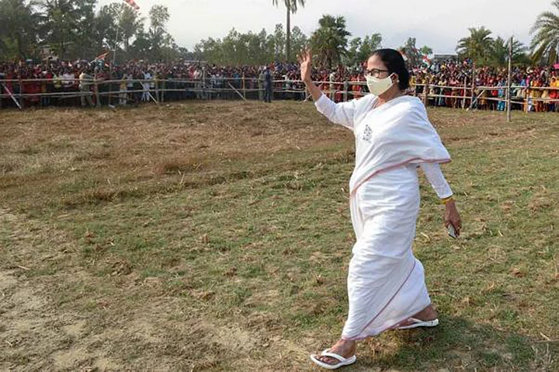 The Trinamool Congress supremo was injured in the leg after being allegedly pushed by unidentified people near a temple in the Reyapara area during campaigning at Nandigram, where the BJP pitted her protégé-turned-adversary Suvendu Adhikari against her.