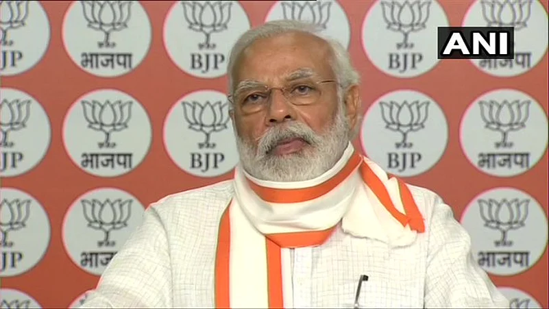 Top BJP leaders, including Union ministers Rajnath Singh, Amit Shah, Nirmala Sitharaman, Piyush Goyal and Giriraj Singh besides party president J P Nadda, joined the online meeting from the BJP headquarters in the national capital, while Modi connected via video link from his residence.