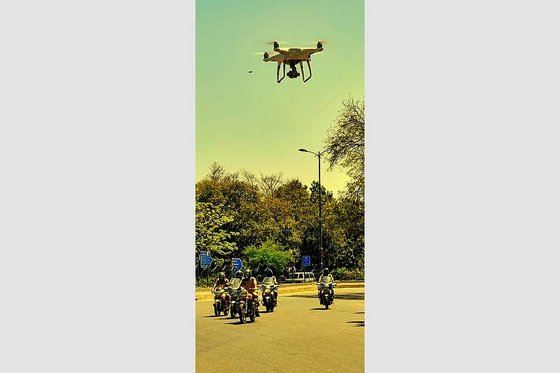 In Mumbai’s Dharavi, another COVID-19 red zone, firefighters use the advanced aerial mist-blowing machine Protector 600 to sanitise the area. In Telangana, engineering and technology solutions company Cyient has given the cops drones kitted out with surveillance cameras to monitor congested areas, thermal imaging payloads and sky speakers for public announcements. “The geothermal camera surveys an area and provides accurate details about the number of people inside a building or on a road. If 200 people are in a building, the camera reads the body temperature of each one of them from a distance and alerts authorities in case of deviations,” says Ankit Kumar, founder of Alternate Global, who is working with several states on drone surveillance.