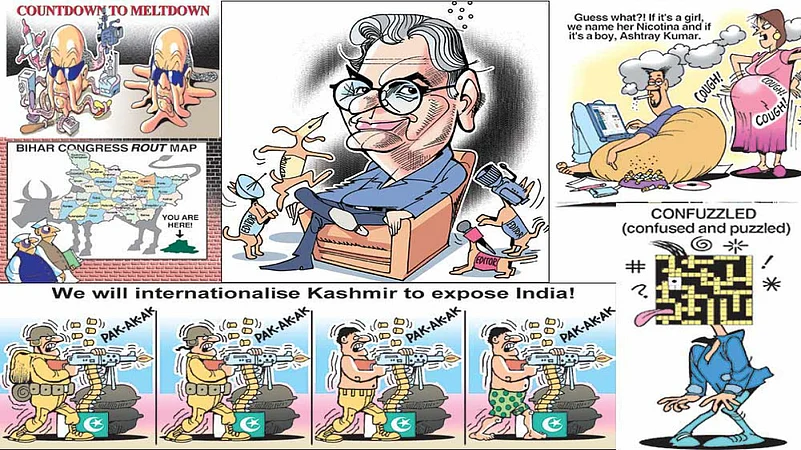 The timelessness of Ajit Ninan’s cartoons is uncanny—the Bihar caricature could have been just after the recent assembly polls where the Congress met the same fate and the Pakistan army firing could be printed any given week. Mark of a true cartoonist, who sees the trees as well as the woods.