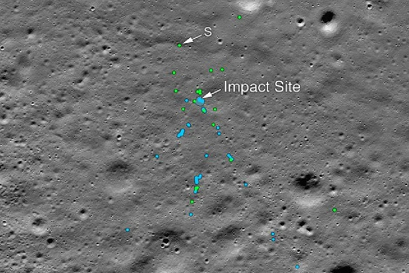 NASA released an image taken by its Lunar Reconnaissance Orbiter (LRO) that showed the site of the spacecraft's impact (September 6 in India and September 7 in the US) and associated debris field, with parts scattered over almost two dozen locations spanning several kilometres.