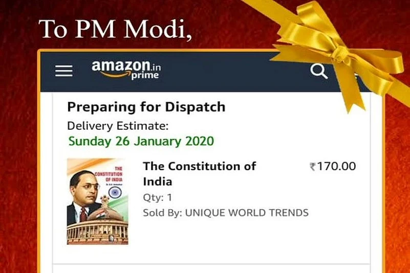 "Dear PM, The Constitution is reaching you soon. When you get time off from dividing the country, please do read it. Regards, Congress," the party tweeted along with the snapshot of an amazon receipt which stated that the copy of the Constitution was being dispatched to the Central Secretariat.