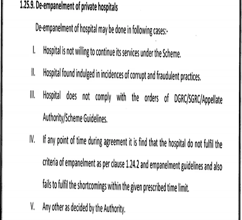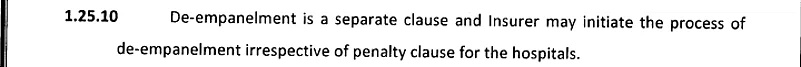 The following are clauses in the RFP document according to which hospitals can be de-empaneled.