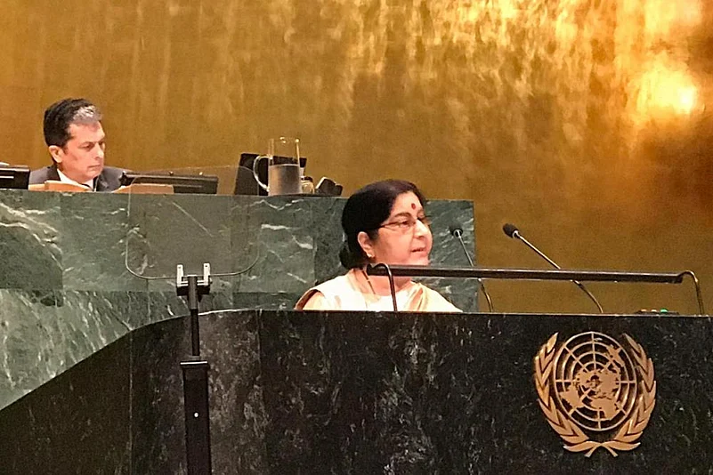 The Indian leader told the world body that after assuming power, Pakistan's new Prime Minister Imran Khan wrote to Prime Minister Narendra Modi suggesting a meeting between the countries' foreign ministers on the margins of the General Assembly. India accepted the proposal but, within hours of its acceptance, news came that terrorists had killed three Indian jawans, she said.