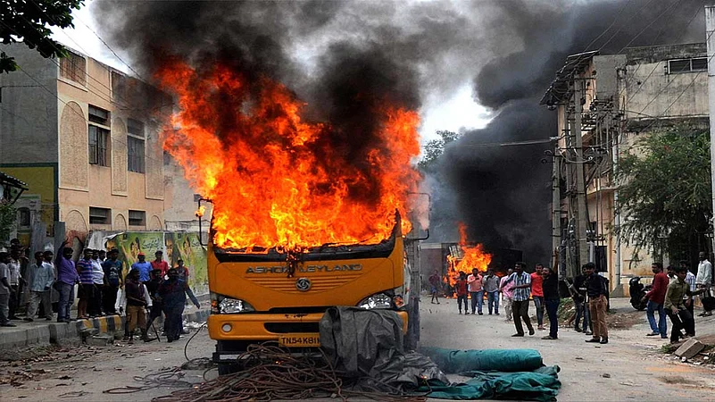 Protests that broke out in Karnataka against the Supreme Court's decision to release Cauvery water to TamilNadu.