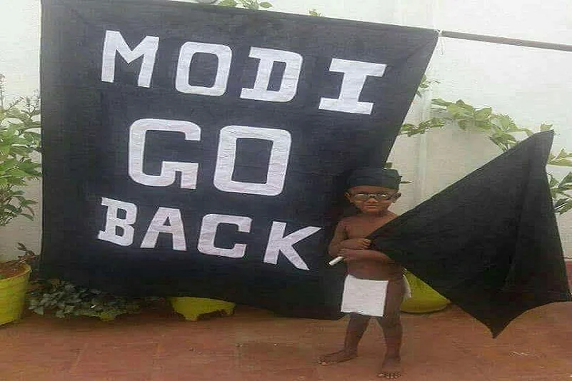 Prime Minister Narendra Modi was greeted with black flags and a hashtag GoBackModi on Twitter before he reached Chennai to attend the Defence Expo-2018 on Thursday.