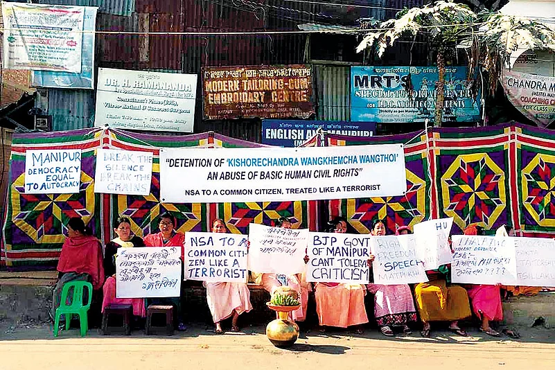 The controversy over the arrest of TV anchor, Kishorechandra Wangkhem, and his subsequent jail sentence is a festering sore in the reputation of the BJP government in Manipur. Wangkhem was booked under the National Security Act, just because he posted a Facebook video in which he called chief minister N. Biren Singh a puppet of Prime Minister Narendra Modi. The government has come to be known for being oversensitive to criticism, clamping down on anyone making adverse remarks against it, even on social media. Kishorechandra is the latest case but there have been similar outlandish arrests before him.