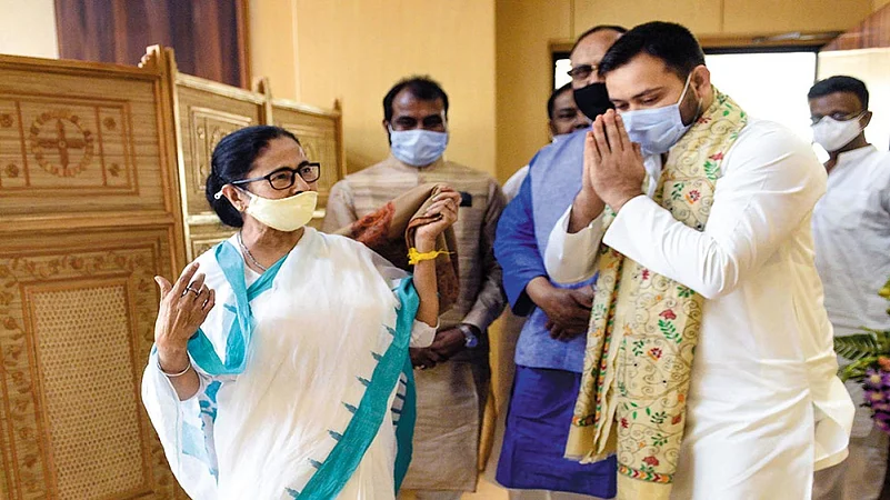 Many trains crisscrossed the Ganga—and the Hooghly—since Rashtriya Janata Dal president Lalu Prasad Yadav and Trinamool Congress chief Mamata Banerjee crossed swords over the performance of the railways. That was then, when the two were railway ministers in the ten-year UPA rule, each taking turns to head the national transporter. Mamata dogpiled on Lalu since assuming charge in 2009 and belittled her predecessor’s claims of a phenomenal turnaround in the cash-strapped railways on his watch as political whataboutery. Lalu disliked her and the feeling was mutual. Cut to 2021, the ailing Bihari patriarch, serving a long sentence for a fodder scam, is firmly behind his once bete noire as she battles a snapping-at-the-heels BJP in the West Bengal assembly elections staggered over eight phases this March-April. Forged on old anvils, they have a common axe to grind—much like my enemy’s enemy is my friend.