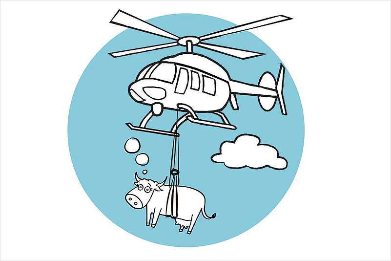 Indian cows have one more reason to be jealous of their Swiss cousins. The latter not only get to eat grass instead of plastic and trash salad, but also enjoy free helicopter rides. An injured cow luxuriated in this privilege as she could not walk down the Klausen Pass with the thousand other cows in her herd. The migration to the lower Alps is an annual event called Bodenfahrt. A farmer said the experience may have been traumatic for the cow, though in photos, she seems to be enjoying the lovely alpine view. Hopefully, next year cows won’t start faking injuries to get a joyride. A cow’s-eye view of the Alps, anyone?