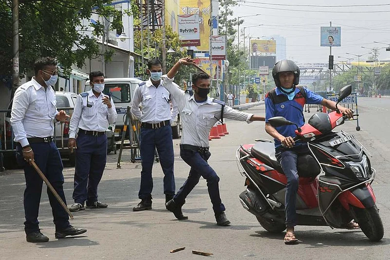 Cops across the country have enforced the lockdown with the lathi. Here’s an example from Calcutta.
