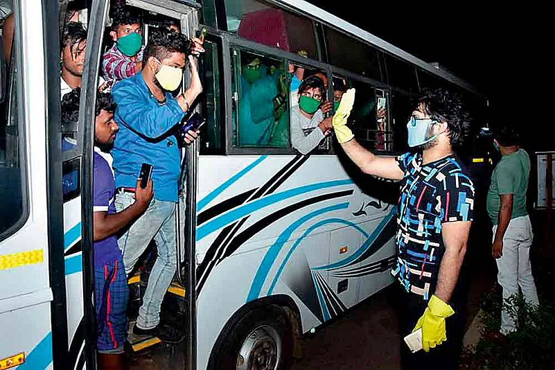 “As an actor, my job is to bring a smile to people. But there is a world of difference between that smile and the smile of someone I helped. I am overwhelmed by the love and affection of the people,” he says. And Sabyasachi, known for his on-screen histrionics, has brought smiles indeed—like Sonu Sood, Bollywood’s super-villain who have taken it upon himself to unite migrant workers with their families by arranging transport.