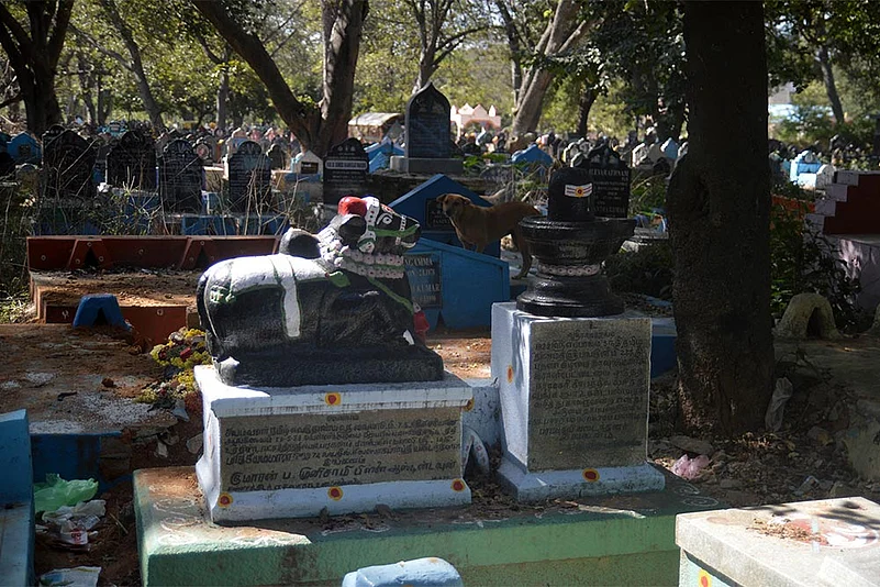 For Deemer, who was then running a startup media company in Bangalore, the Hindu cemetery had been an exciting discovery and he’d put up the pictures on his blog AsiaObscura in 2013 (he’s since moved to the US). “I spoke to several friends while writing that, and after posting it, and heard so many different explanations,” he tells Outlook over e-mail. “One friend told me most Hindus are buried, another told me only some communities buried their dead, but most were surprised to hear there were Hindu cemeteries at all—and insisted I’d found a Muslim or Christian cemetery instead,” he says. Indeed, one recent visitor to his blog left this comment: “Thanks to Jayalalitha, I discovered the practice of burial by Hindus.”