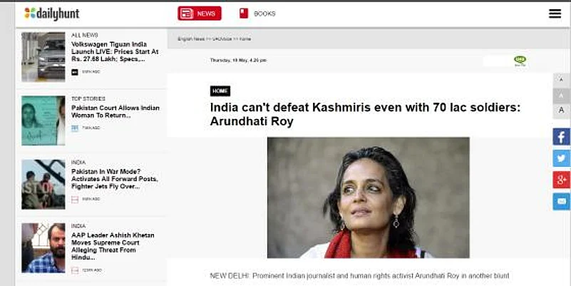 Arundhati, however, has denied ever making the statement to which Rawal (and later singer Abhijeet) responded on Twitter. "I have not been to Srinagar recently. And my last comment on Kashmir is an article published last year in Outlook," she told this magazine.