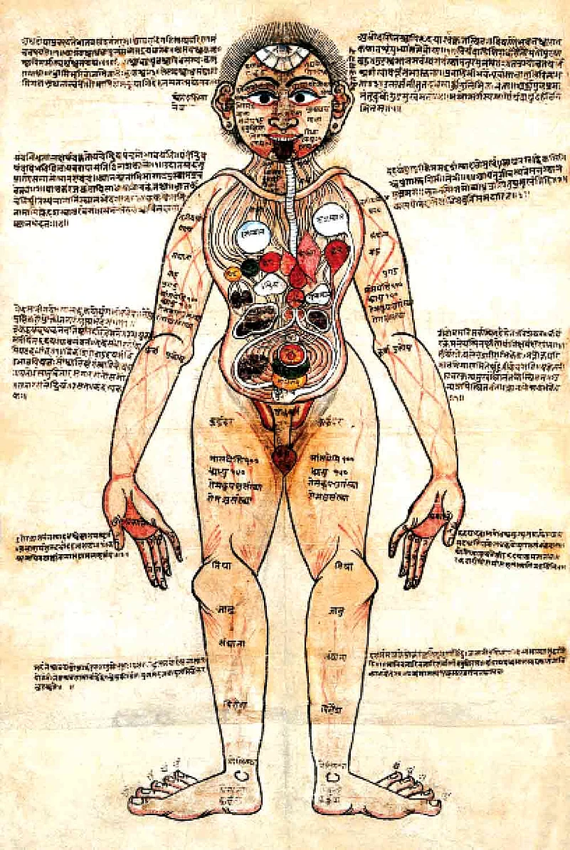 An 18th-century Nepalese ayurvedic drawing on human body anatomy