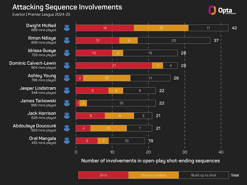 This match should offer an interesting clash of styles. Only Crystal Palace (0.089) average a lower xG per shot figure than Everton (0.093) in the Premier League this season, while Brentford are the side with the highest xG per shot in 2024-25 (0.149).