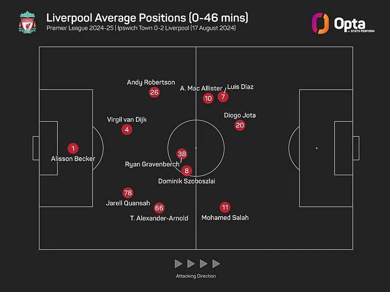 Slot's team had been out-shot by four to three in the first 45 minutes and struggled to get a foothold as Ipswich won 58.5% of duels contested, leaving the former Feyenoord boss to praise his team's ability to change things at the interval.