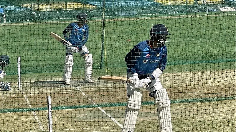 Both batted in adjacent nets for around 30 minutes under the supervision of head coach Rahul Dravid.