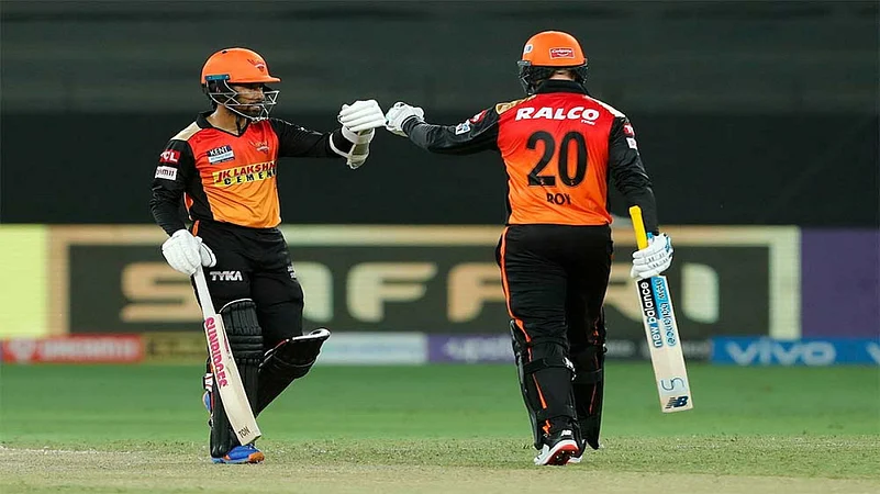 Opener Jason Roy and skipper Kane Williamson struck confident half-centuries to shape Sunrisers Hyderabad's comfortable seven-wicket win over Rajasthan Royals in Dubai on Monday. Opting to bat, RR scored 164 for six on the back of a well-calculated 82-run knock by skipper Sanju Samson. However, the score proved insufficient as Roy (60 off 42) and Williamson (51 not out) led SRH to their only second win in IPL 2021. (Photos: BCCI-IPL)