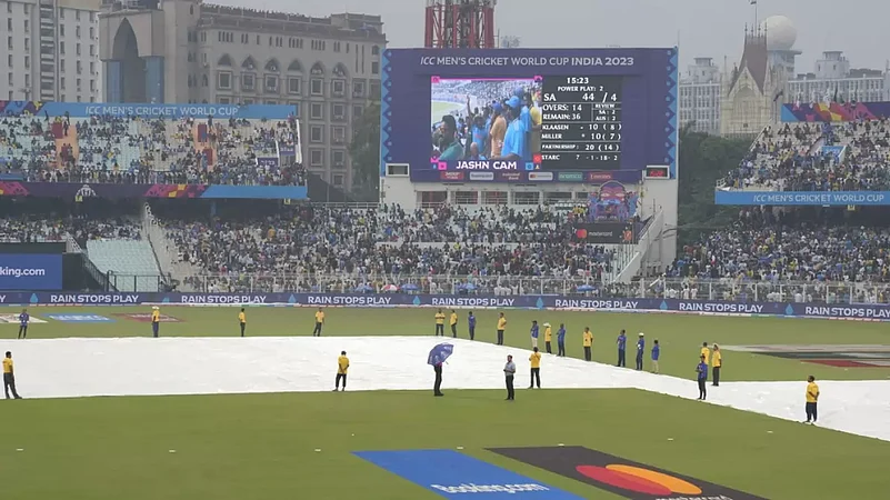 The second semi-final between South Africa and Australia at Kolkata's Eden Gardens was delayed due to rain. Rains interrupted play during the 14th over of the South African innings. (Match Blog | Scorecard | Full Coverage)
