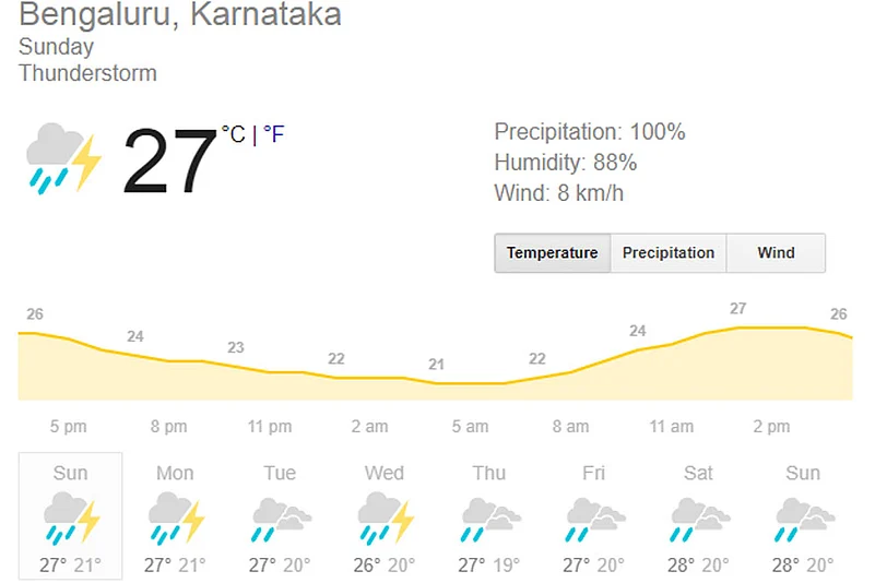 The weather predictions show that thunderstorm and rain is likely in Bengaluru throughout the day, because of which the match may get curtailed.