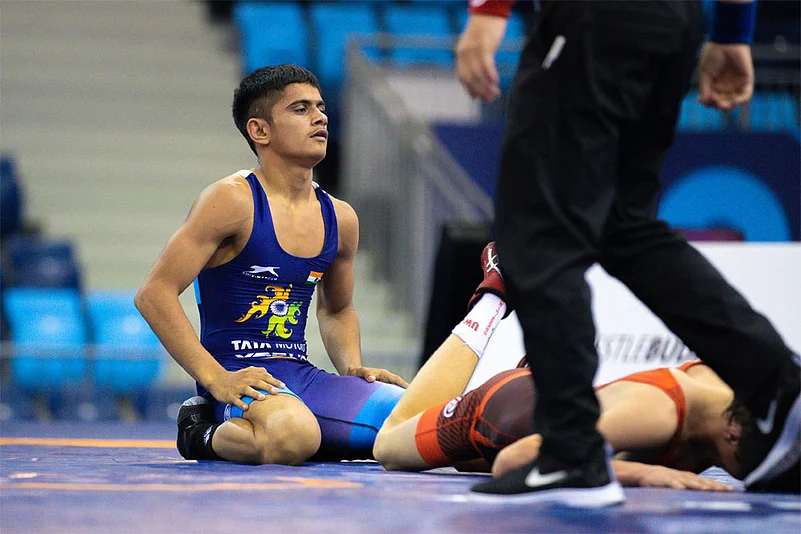 Sahil won bronze in the 110kg by pinning Kazakhstan's Alikhan Kussainov inside the first two-minute period.