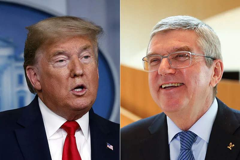 A day after officially postponing the Tokyo Olympics, IOC president Thomas Bach invoked comments by President Donald Trump to defend himself from criticism on Wednesday.