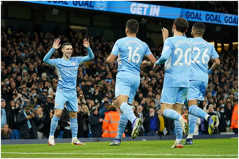 Seven goals — even without a recognizable striker. A seventh successive victory. Manchester City are looking ruthless in its Premier League 2021-22 title defense. Kevin De Bruyne struck twice, while Phil Foden, Jack Grealish, Riyad Mahrez, John Stones and Nathan Ake also got on the scoresheet as the champions overpowered Leeds 7-0 on Tuesday. (More Football News)