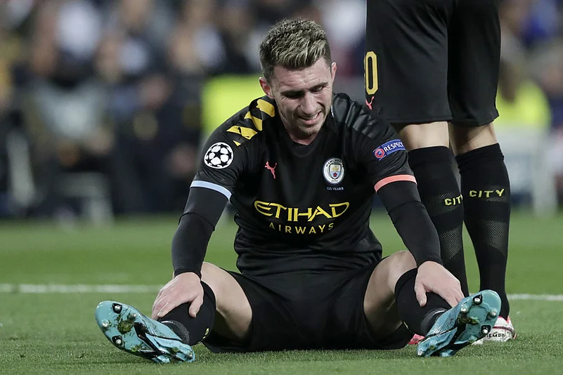 French defender Laporte had to be replaced by Fernandinho 33 minutes into Wednesday's contest at the Santiago Bernabeu after appearing to suffer the injury in a collision with Karim Benzema.