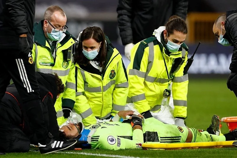 The Portuguese was forced off on a stretcher after colliding with teammate Conor Coady during injury time of Monday evening's Premier League fixture at Molineux.