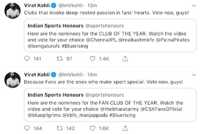 Unlike his fellow sports stars, Kohli's timeline on Thursday showed a promotional tweet about the Indian Sports Honours. With no reaction from the skipper, fans targeted the 30-year-old and his promotional tweet.