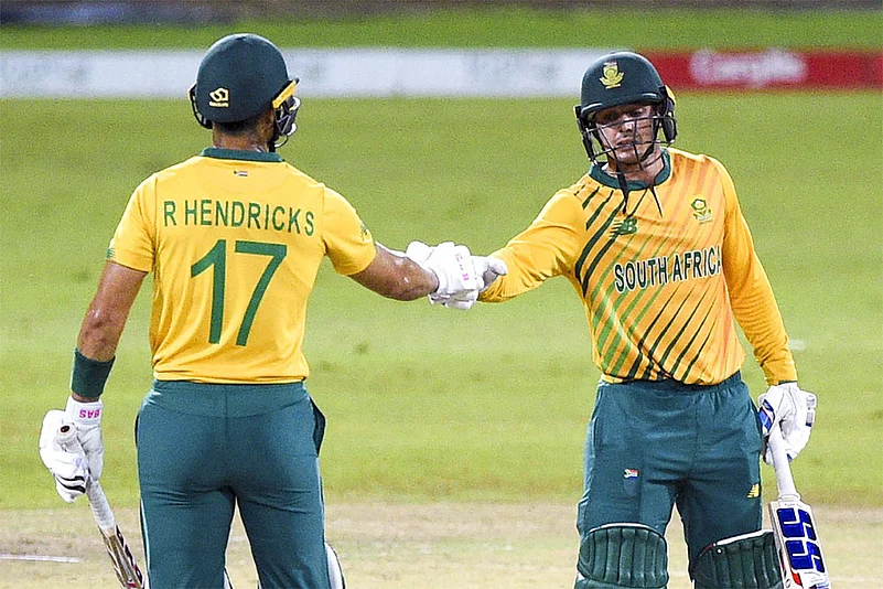 An unbroken 121-run opening stand! Reeza Hendricks (59 off 46) and Quinton de Kock (56 off 42) produced a seemingly flawless opening stand as South Africa chased down Sri Lanka's 120/8 in the third and final T20 International match at R. Premadasa Stadium, Colombo on Tuesday. The Proteas reached the target in 14.4 overs to spare, and completed back-to-back T20 series sweeps against Sri Lanka. Earlier, Sri Lanka captain Dasun Shanaka won the toss and opted to bat first. But none of the batsmen, except Kusal Perera (39 off 33) managed to play a good knock. Shanaka tried to dig in but could manage only 18 off 26 balls. Chamika Karunaratne, however, hit 29 off 19 including a last-ball six to Sri Lanka a fighting total. Sri Lanka won the preceding three-match ODI series 2-1. This was the last match for both teams before the ICC T20 World Cup. Catch highlights of SL vs SA, 3rd T20 match here: