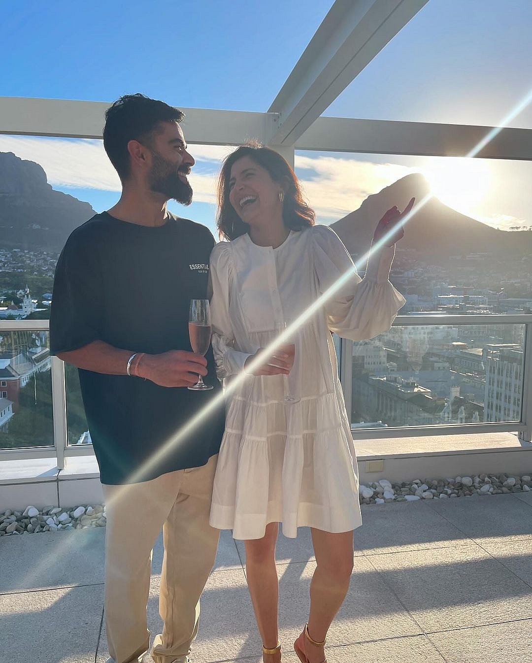 After winning the World Cup T20, cricket legend Virat Kohli celebrated the victory with a glass of champagne with his wife, actress Anushka Sharma.