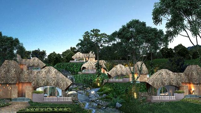 The architecture has already been feted by design magazines since last year, in fact. There are residences arrayed in clusters, sheltered amidst trees, all with their own little pools. There are thatched mud huts (aka Clay Pool Cottages) of the Pa-Ta-Pea earth-dwelling agricultural tribe. There are Tent Villas—poetic pavilions of the Khon-Jorn nomads, hunters and traders, that resemble nothing so much as elegant upturned dinghies. There are the Tree Pool Houses, pods of slender bars reminiscent of songbird cages in a lotus bud shape, supposedly inspired by the treehouses of the sky-worshipping healers and inventors of the We-Ha. And there are woven Bird’s Nests, shaped as though a giant baya weaver’s home were blown over and co-opted by a ground-dwelling creature like Man—supposedly the homes of the luxurious and artistic Rung-Nok people.
