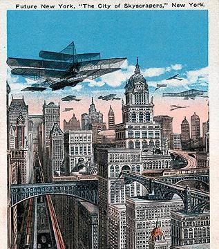 In this, my favourite section of the magazine, we return every month to images that transport us back into the past. If memory serves me right, this is the first time we’re carrying images from the past that tell us what our future will hold. That future is already past — but that’s time travel for you. It’s quite a delightful genre, and highlights include French and German picture postcards from the turn of the last century which imagine what life in the year 2000 would be like. The French play underwater croquet while the Germans walk on water or flit about like moths. Then there are the Americans, with this vertiginous vision of NYC. That’s one dream that certainly seems to have come true.