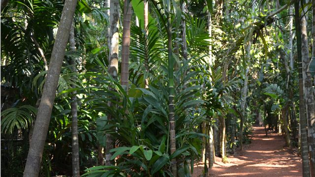 An hour’s drive from from bustling Panjim is Ponda, an obscure pocket of greenery and winding roads. This little hamlet wasn’t on my itinerary, but when someone mentioned ‘spice plantation’ and ‘elephant ride’ together, I decided to check this place out. Through sheer serendipity I discovered the Tropical Spice Plantation of Ponda. As we approached, the scenery started to change before my eyes. Straight highways gave way to winding roads and houses and shops to forests. Suddenly I see this huge clearing in the middle of nowhere, a parking space with many scooters and small vehicles—well, Ponda and the spice plantation were not so obscure after all. I walked in and soon I was standing next to a bog, across which lay the Tropical Spice Plantation which looked like a private jungle of some sort. I’d stepped into a very different Goa: wreathed in silence, full of ducks, egrets and a couple of swans.