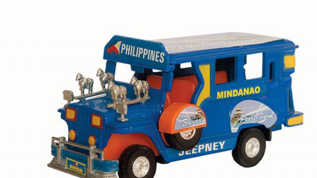 The original Jeepneys were Willys jeeps left behind by the Americans at the end of WWII which were stripped down to accommodate more passengers and used as public transport. Now they and their miniatures are manufactured in the Philippines. This miniature Jeepney is available in every souvenir shop for 200 Peso.
