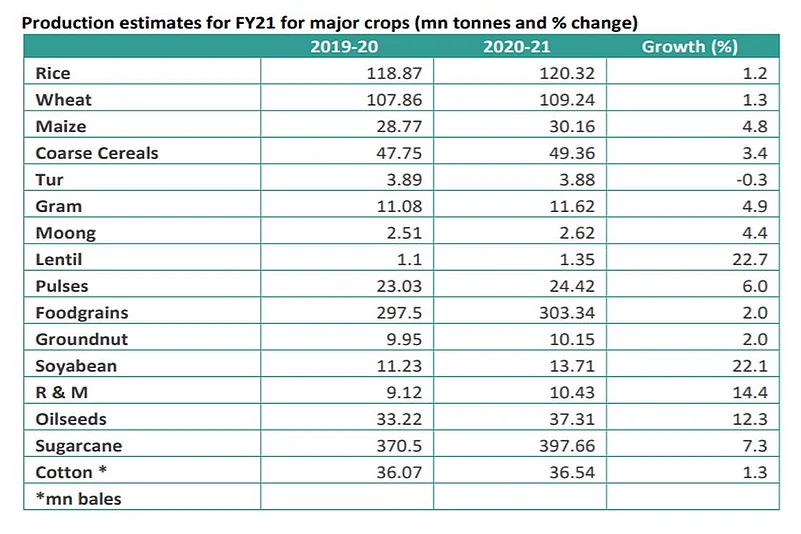 What is more amazing is the expected growth levels this year (2020-21) in the cases of sugarcane (7.3%) and oilseeds (12.3%). Thus, the boost in agriculture comes from the non-major crops.
