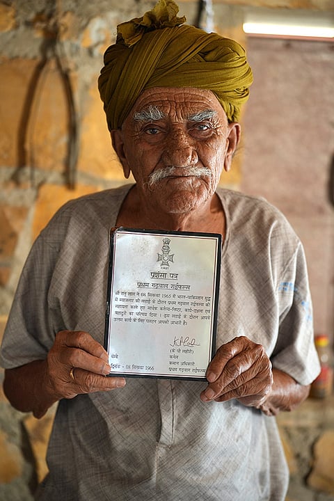 Ranu Lal a former army guide at Myajlar village, located at the edge of the Indian Thar desert border.