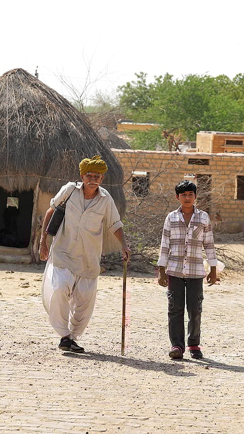 Ranu Lal with his grandson in Myajlar village, located at the edge of the Indian Thar desert border.