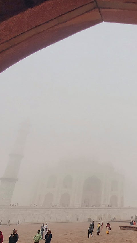 People visit the Taj Mahal on a foggy winter day, in Agra.